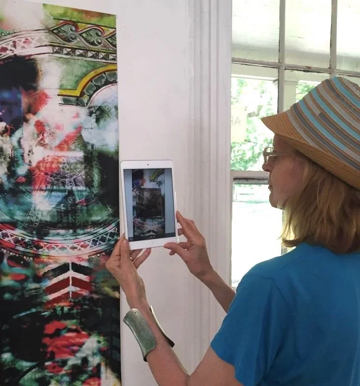 Using the iPad to view the embedded video in the History, Heritage and the Lower East Side series.